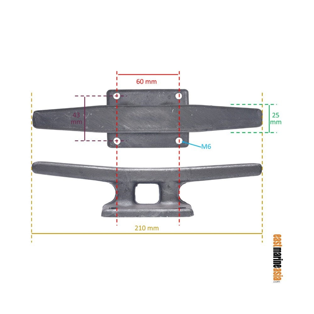 Z Spars 1192 - Aluminium spar cleat or mast cleat is 210 mm long x 25 mm wide, fastens with 2 x 6 mm fasteners on 31 mm hole centres.  Typically installed in the factory with a special deep-nosed rivet tool but can also be installed with machine screws.